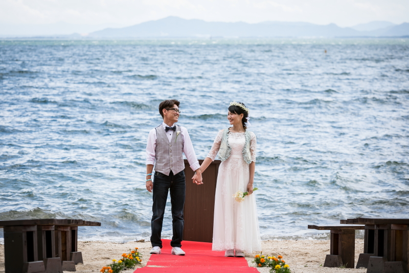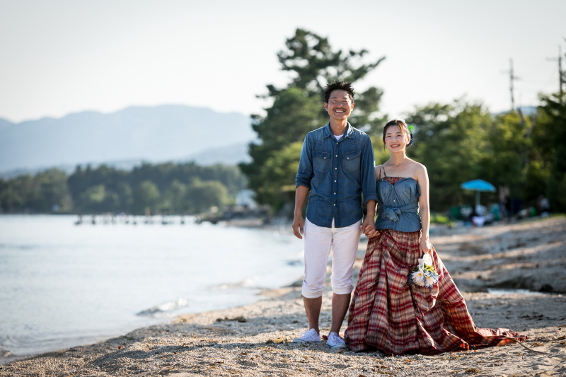 1) 琵琶湖のビーチで行うオリジナル人前式